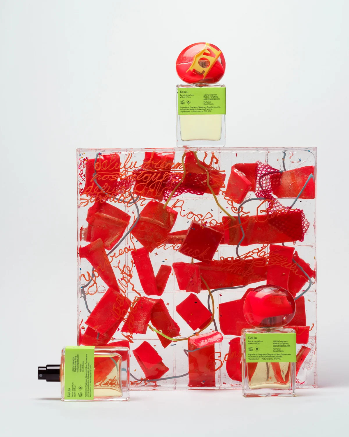 Delulu, skrót od „delusional” („urojony”), opisuje stan umysłu radośnie oderwanego od rzeczywistości; zawłaszczone przez pokolenie Z słowo to celebruje uporczywą wiarę w najdziksze marzenia, nawet wbrew zdrowemu rozsądkowi. Stworzone przez Davida Chieze, Delulu przemienia tę oswojoną fantazję w świat przesycony kolorami, słodyczą i czułością, wypełniony ikonicznymi przedmiotami zawieszonej adolescencji i lekkim cieniem snu, z którego nie chce się wybudzić; to zapach niczym popowy i nostalgiczny kokon dla tych, którzy swoje złudzenia zamieniają w schronienie.